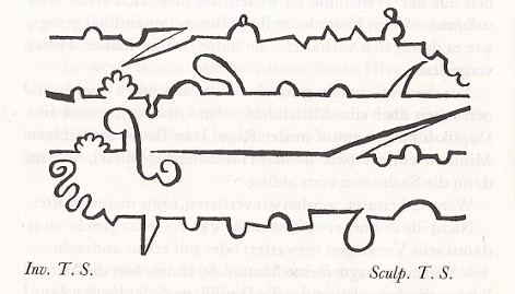 Statt über sein Leben und seine Meinungen schreibt abschweifend Tristram Shandy in Tristram Shandy, in kurvenreichen Pfaden (siehe Abb oben), nun also sofort fortan etwa - u.v.a. - u.v.v.a. - u.v.v.v.a. - … - über: Das Schlittschuhlaufen gegen den Wind in Flandern. Das Auskämmen von Eselsschwänzen. Nasen. Das Unterschreiben von Widmungen (Ich habe die Ehre zu sein, mein gnädiger Herr, Euer Gnaden gehorsamster, und ergebenster und untertänigster Diener. gez. Tristram Shandy). Das Anschlagen von Lobpreisungen an Türen. Die schwierigsten Probleme der Geometrie. Einen F.. Tausend kleine skeptische Ansichten, die als Grillen, als vive la Bagatelle! auftreten. Die Befugnisse der Hebamme laut römischkatholischer Kirchenordnung. Schöne Leserinnen. Die Macht des Ungewitters. Wirkungen, welche die Leidenschaften und die Gemütsbewegungen auf die Verdauung ausüben. Verworrene, dickköpfige Dunkelmänner. Backenbärte. Das unerklärliche Erscheinen des Dr. Slops. Steckenpferde. ⅏ ⅏ ⅏ ⅏ ⅏ ⅏ ⅏ ⅏ ⅏ ⅏ ⅏ ⅏ ⅏ ⅏ ⅏ ⅏ ⅏. Verräterisch zerrissenes Rockfutter. Den erhabenen Kaulfrosch, der den ganzen Tag lang Sommer und Winter in einer Pfütze lebt und plätschert. Große Perücken und lange Bärte. Springen, spritzen, hüpfen, steigen, bocken wie ein ungesatteltes Füllen. Alle Beweisführungen der Naturphilosophie. Knopflöcher. Eine dicke närrische Spülmagd. Die Amputation des Schwanzes eines jungen Hundes. Hilfszeitwörter. Das Korrigieren kitzliger Erörterungen in fastendem Zustand. Schuhe, die bei den Römern in Mode waren (der offene Schuh, der geschlossene Schuh, der Schlappschuh, der Holzschuh, der Soccus, der Halbstiefel, der Soldatenschuh mit Nägeln, der hölzerne Überschuh, die Pantoffel, der Riemenschuh, die Sandale mit Nesteln, der Filzschuh, der leinene Schuh, der gestrickte Schuh, der geflochtene Schuh, der calceus incisus und der calceus rostratus). ∗ ∗ ∗ ∗ ∗ ∗ ∗ ∗ ∗ ∗ ∗ ∗ ∗ ∗ ∗ ∗ ∗ ∗ ∗ ∗ ∗ ∗ ∗. Umstände, unter denen einem das Wort Spleen in den Sinn kommt. Fou - fou - fou - fou - fou - fou und bou - bou - bou - bou - bou - bou, immer schneller. Zwei Tassen Milchkaffee. Die süße Periode im Leben des Menschen, wenn das Gehirn noch zart und faserig und mehr als irgend etwas der Pappe ähnlich ist. Eine Liste der Sehenswürdigkeiten von Lyon. Die Post. Das Vorhaben, die Türangel im Wohnzimmer noch unter der derzeitigen Regierung in Ordnung zu bringen. Das Verschieben dieses Vorhabens auf die Periode der nächsten Regierung. Tantarra-ra-tan-tivi. Das Ausziehen von Reitsteifeln, die an der Ferse drücken. Den verwünschten Schlitz im Rock. Den momentanen Kampf in den feuchten Augen eines Aprilmorgens. _ _ _ _ _ _ _ _ _ _ _ _ _ _ _ _ _ _ _ _ _ _ _ _ _ _. Einen GOCKEL und einen BULLEN.